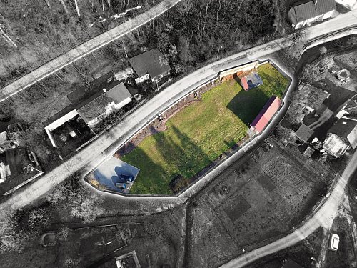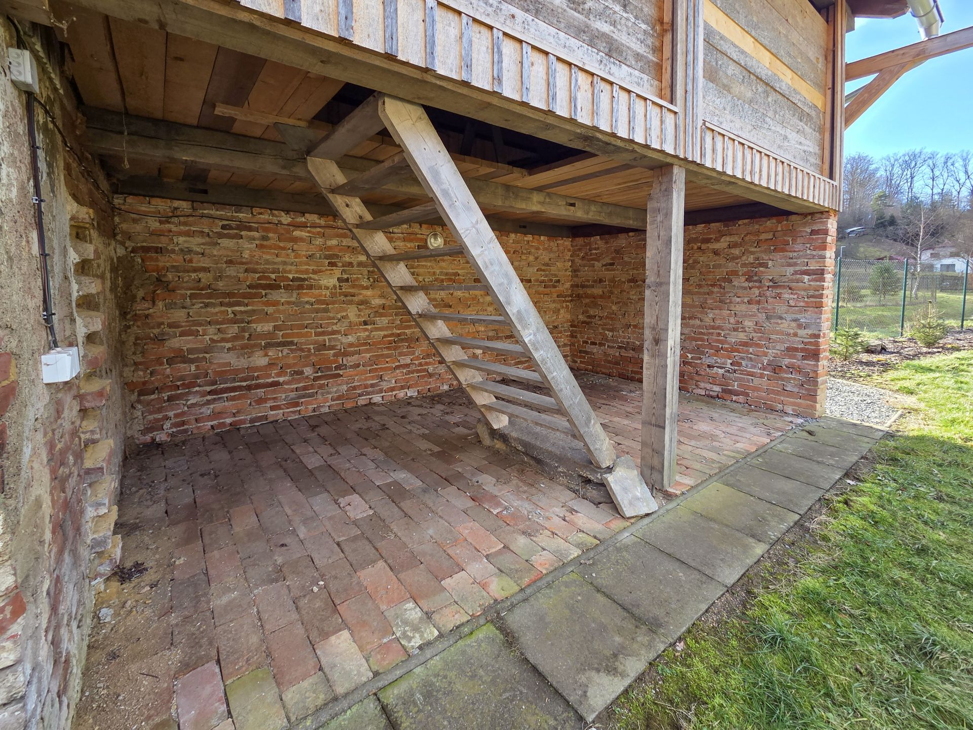 Součástí pozemku je menší patrová hospodářská budova. Dále zachovaná obvodová zeď původního domu umožňující případnou budoucí výstavbu na hranici pozemku a přibližně 200 let starý klenutý sklep. Celý areál je nově oplocen s podezdívkou a osázen převážně jehličnatými stromy. Vjezd je umožněn dvěma branami, z toho jedna je vybavena elektrickým pohonem.