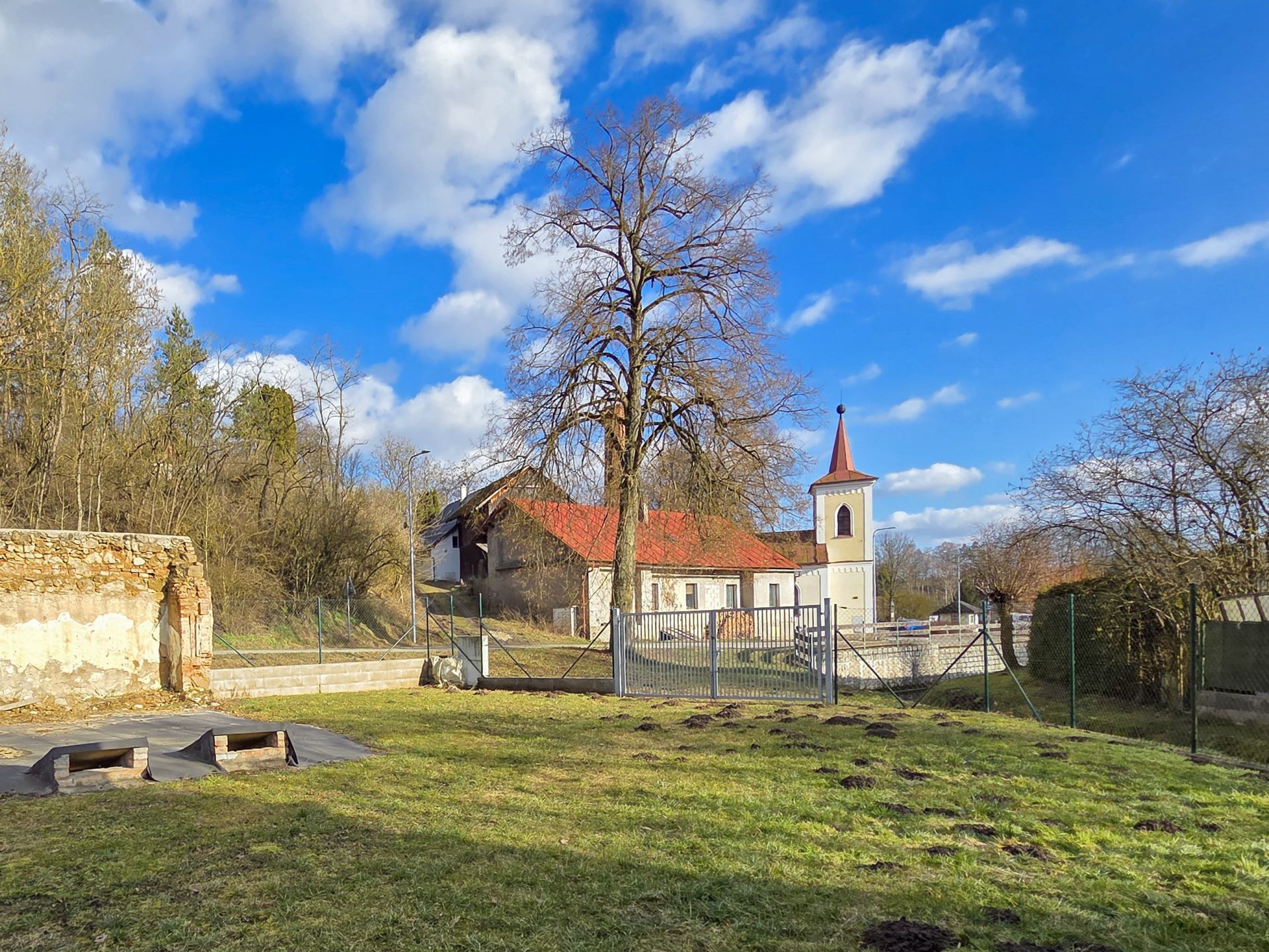 Pozemek je napojen na elektřinu (jistič 3×32 A), veřejný vodovod a je zde k dispozici optický internet od lokálního poskytovatele. Kanalizace v obci není k dispozici. Nemovitost se nenachází v památkově ani krajinně chráněném území.