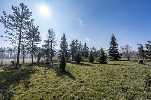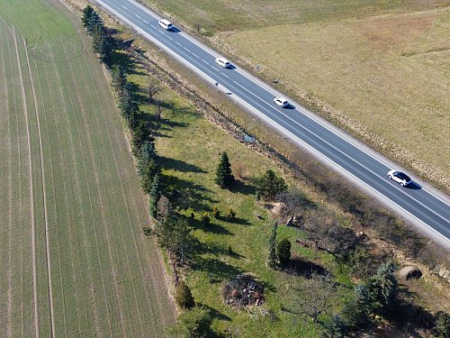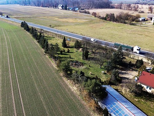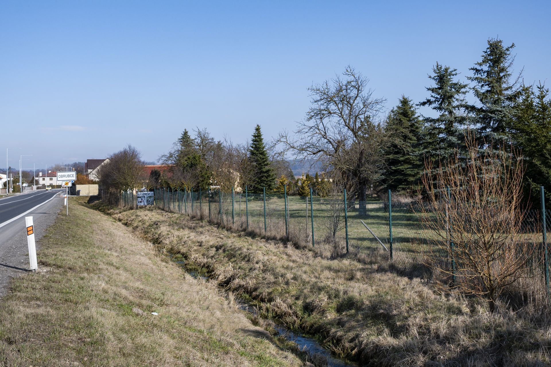 Pozemek k pronájmu v obci Obrubce, situovaný přímo u hlavní silnice s vlastním samostatným vjezdem z komunikace.