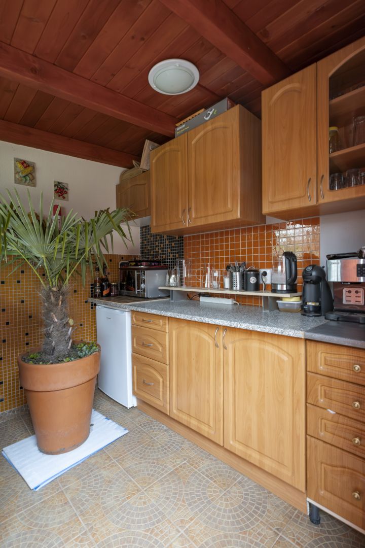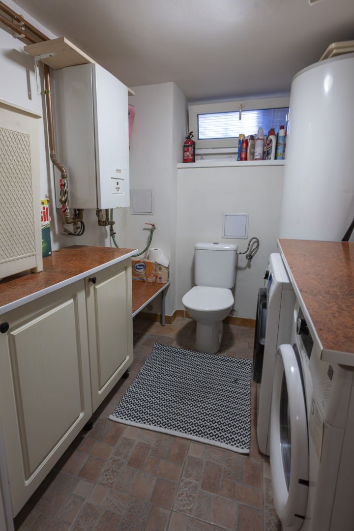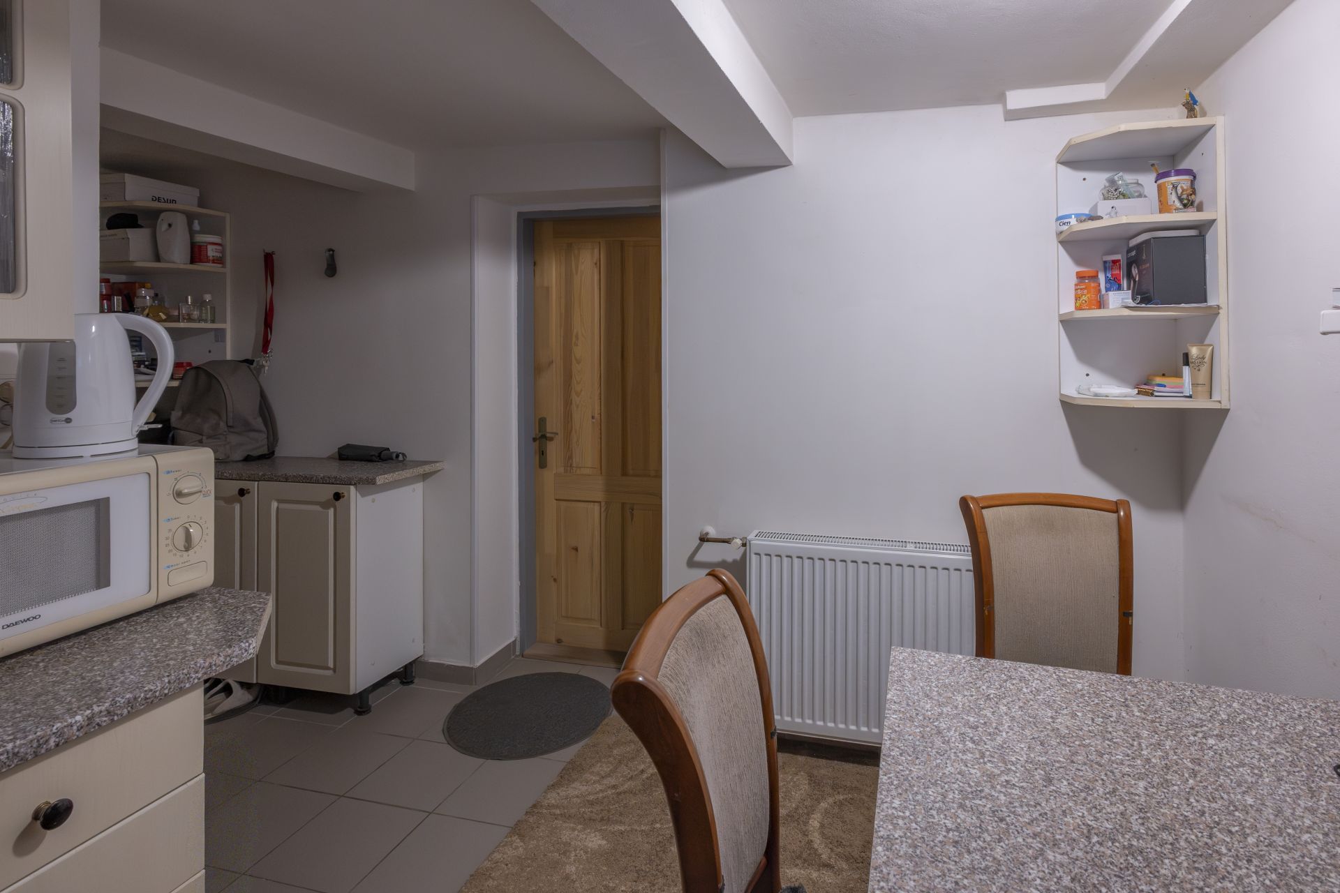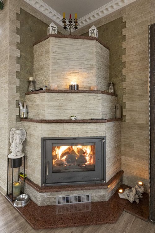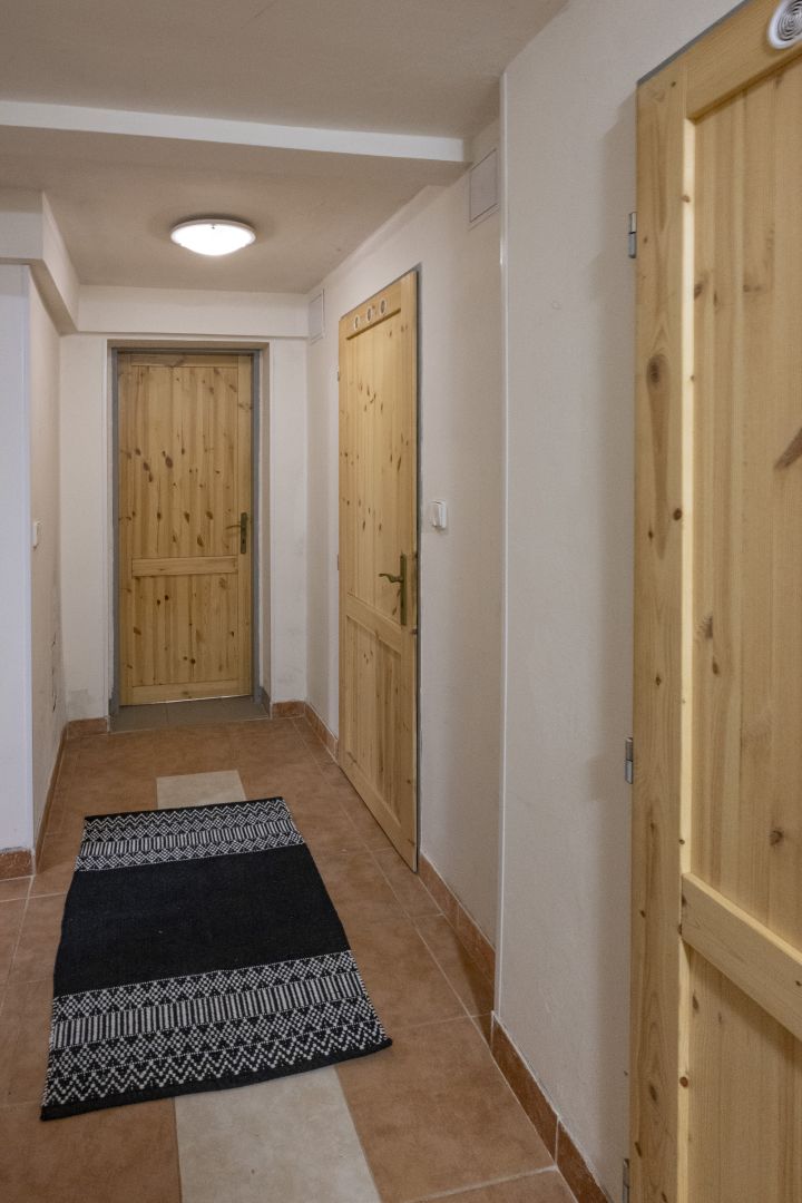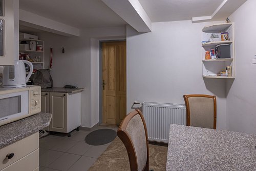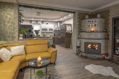 Vytápění je řešeno elektrokotlem, k dispozici je také krb s výměníkem.