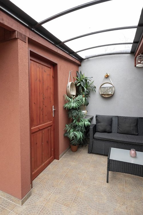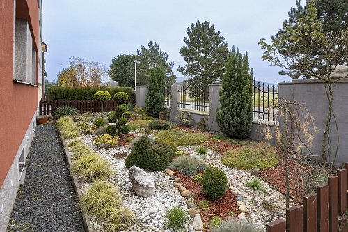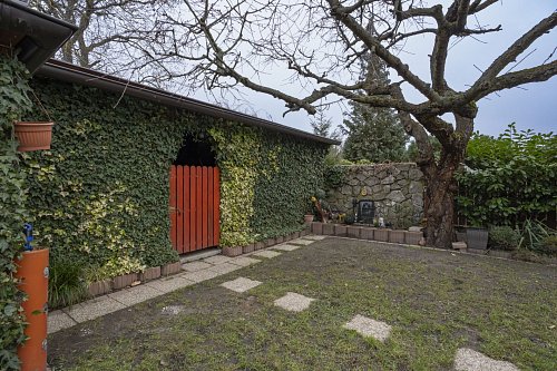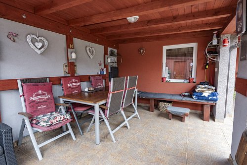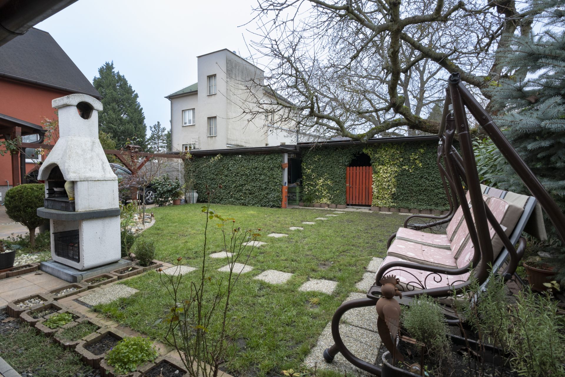 Součástí nemovitosti je upravená zahrada s příjemným venkovním posezením, letní kuchyní a samostatnou toaletou. Parkování je zajištěno minimálně dvěma parkovacími stáními na dvoře, z nichž jedno je kryté. K dispozici je rovněž kolna.