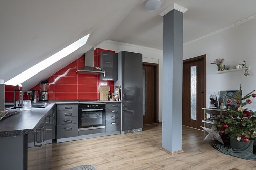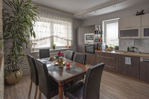 Zastavěná plocha domu činí 112 m². Dům je dispozičně řešen jako tři samostatné bytové jednotky, které jsou propojeny společným bočním schodištěm. V suterénu se nachází byt 1+kk s možností úpravy na 2+kk, v přízemí byt 2+kk a v 1. patře prostorný byt 3+kk. V mezipatře se nachází další samostatný pokoj. Díky tomuto uspořádání je nemovitost vhodná jak pro vícegenerační bydlení, tak i jako investiční příležitost k pronájmu jednotlivých bytů.